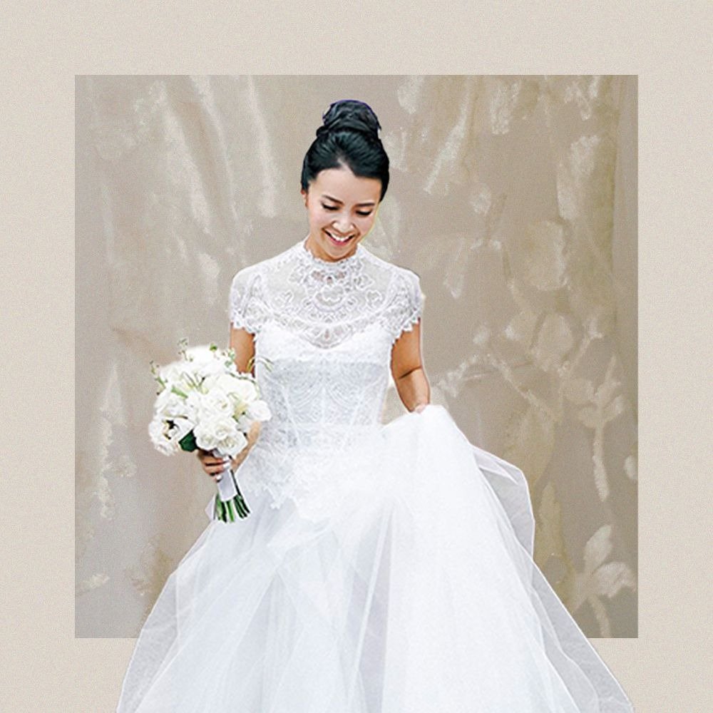A: Take one distinctive element from the vintage era and pair it with contemporary minimalism. A 1970s bishop sleeve on a clean crepe dress. 1920s beadwork on a modern slip gown. Isolation of the defining element reads current rather than costume.